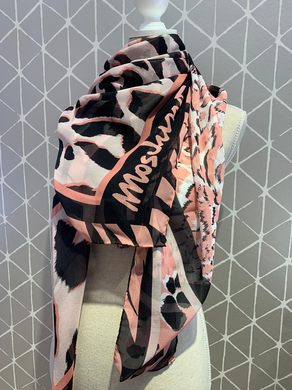 Pañuelo Moschino rosa y negro animal print