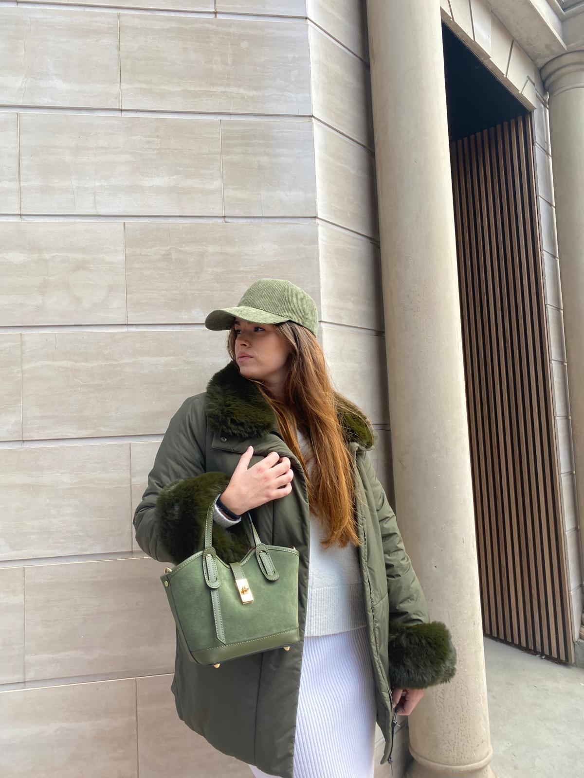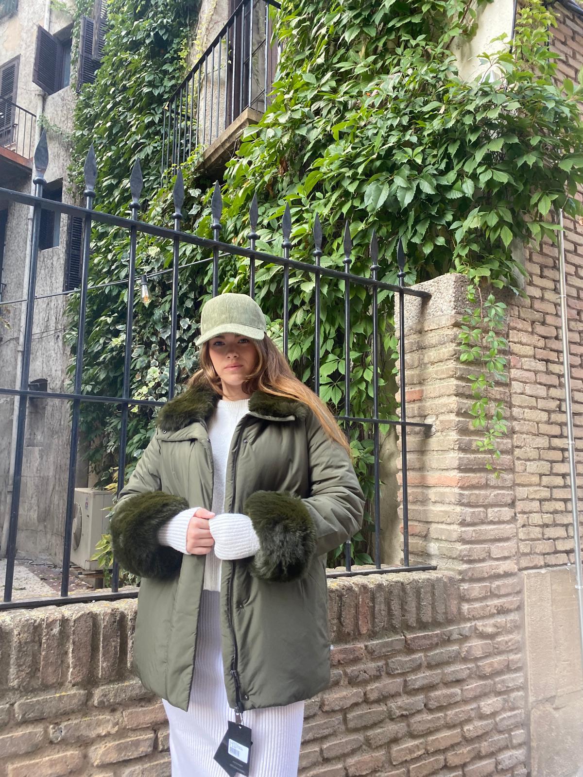Como esta parka de la nueva colección de Gus de tejido acolchado y largura tres cuartos, en color verde, con un gran cuello forrado de pelo ecológico en el mismo tono verde, para protegerte del frío y la lluvia. Cierre central de cremallera que queda oculta tras una solapa con cierres de broche y bolsillos en los laterales. Un abrigo todoterreno, relleno de auténtica lana de camello de alta calidad, que combina con cualquier look y que se convertirá en tu favorito en estos meses más fríos.