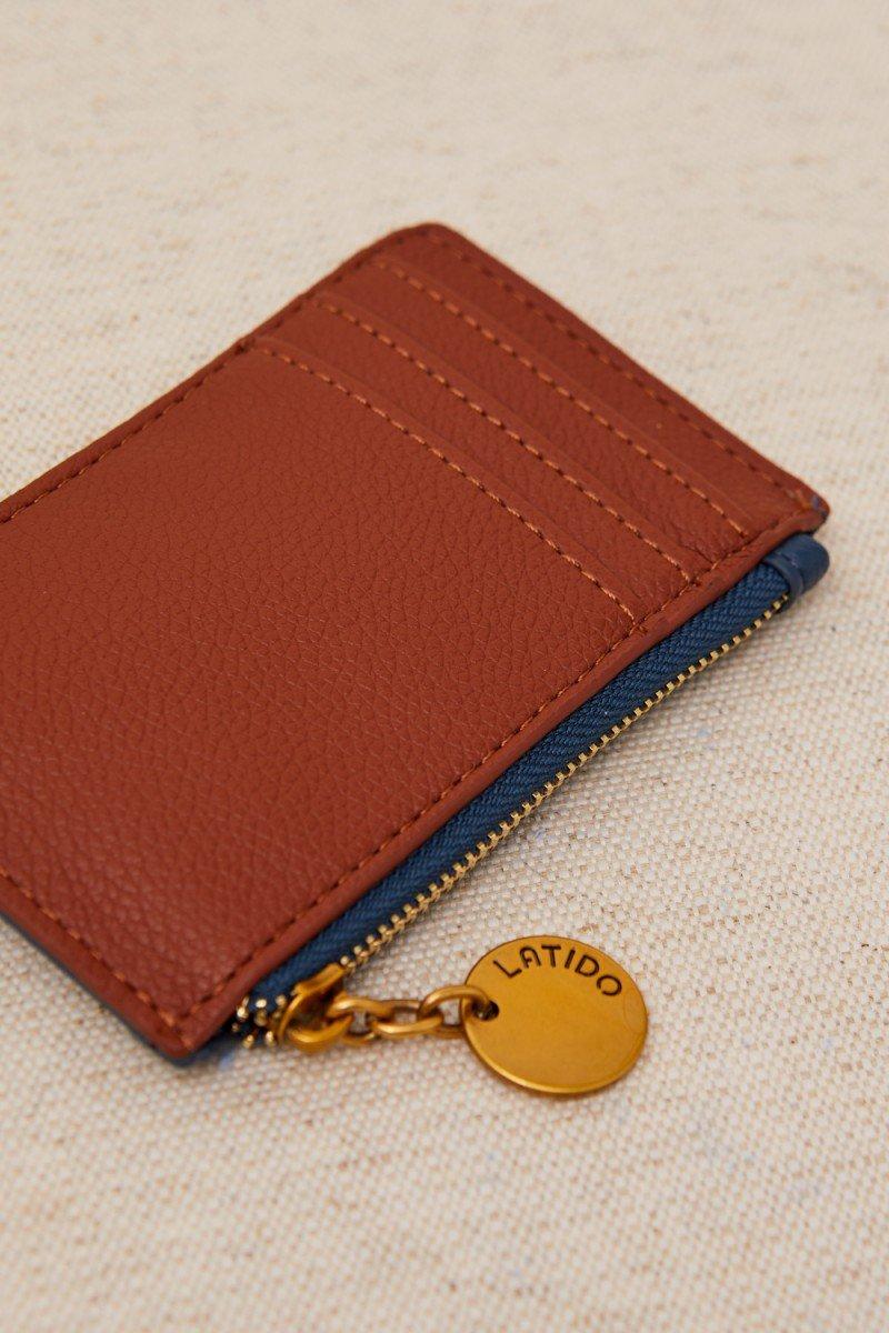 Como esta cartera tarjetero en piel ecológica, realizado en tono azulón por un lado y marrón el otro, perfecto para organizar tus tarjetas y documentos de manera compacta y segura. Con tres compartimentos exteriores y un cierre de cremallera, ofrece una solución funcional y elegante para el día a día. Su diseño compacto lo hace ideal para llevar en cualquier bolso o bolsillo, y la tira extraíble añade una capa adicional de practicidad.