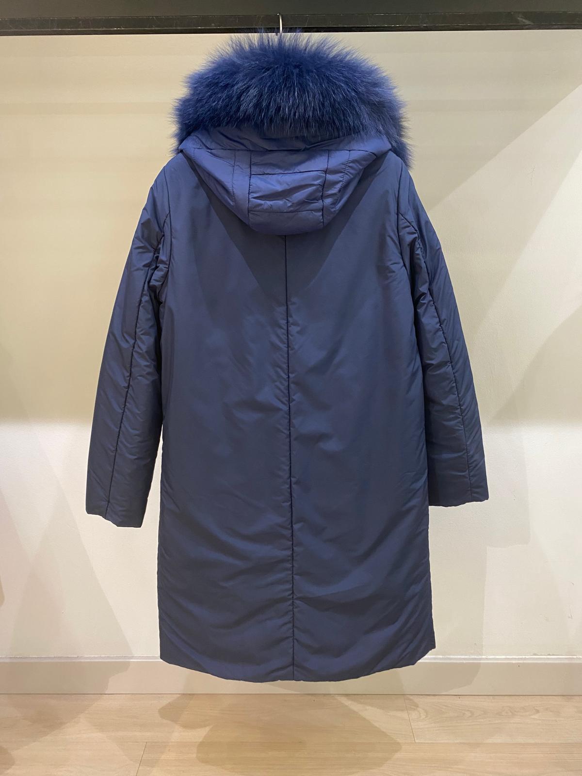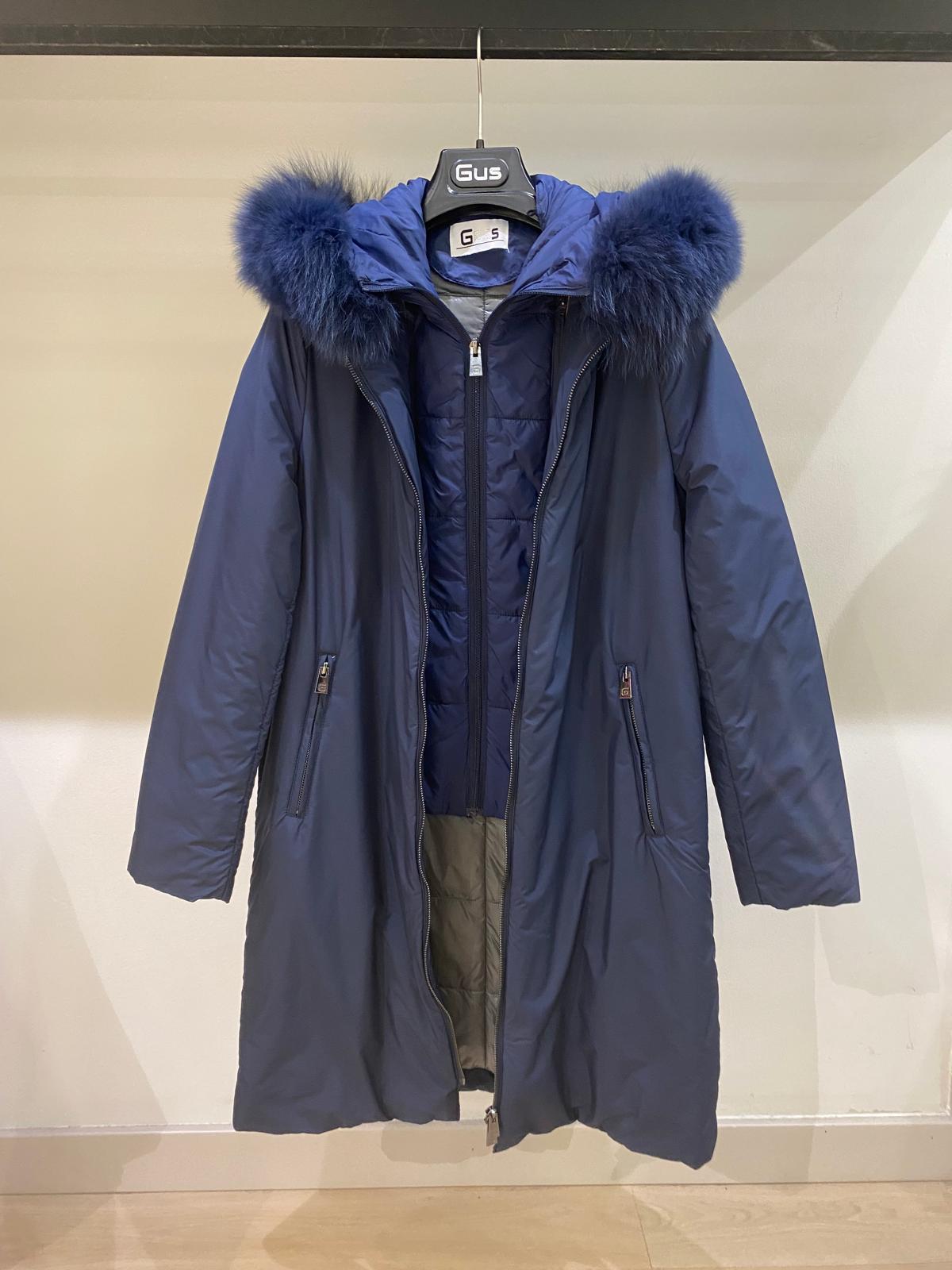 Abrigo Gus azul marino con capucha de pelo y chaleco interior