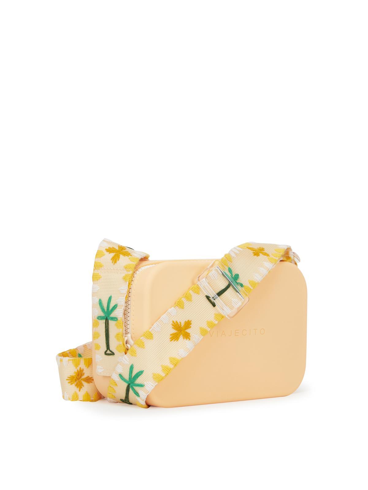 Bolsos muy versátiles como este modelo en formato bandolera en color vainilla, con cierre de cremallera en tono crema y una maravillosa correa con motivos vegetales bordados a mano en tono amarillo pastel. El interior está forrado en tejido de algodón e incluye un bolsillito.