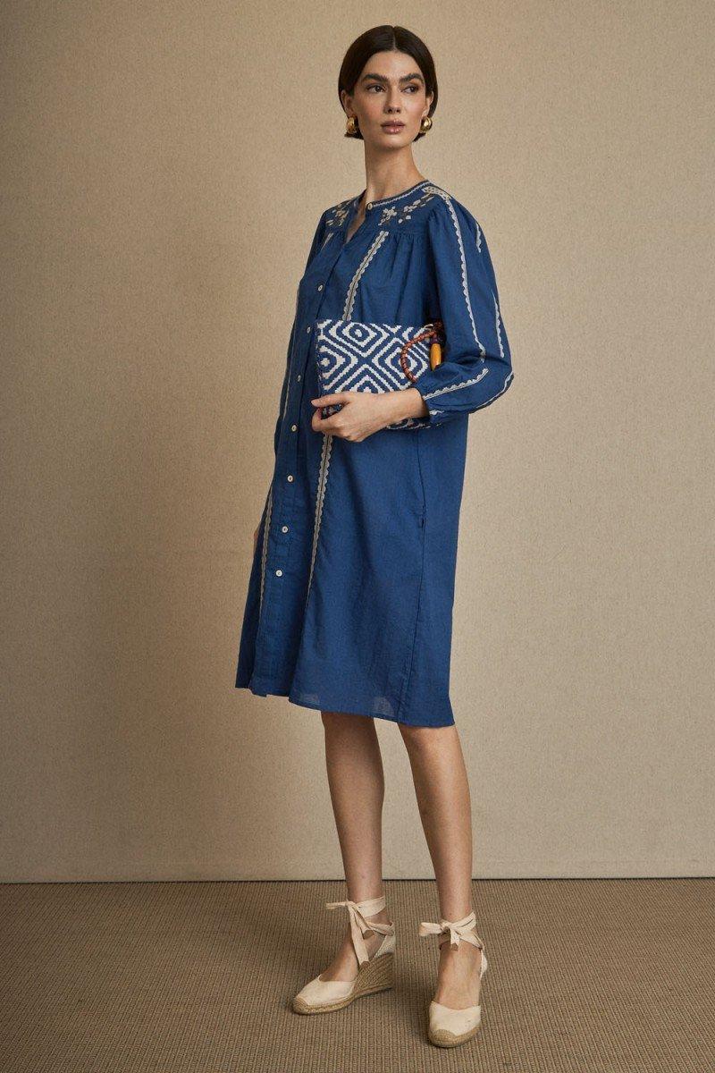 Vestido azul bordado blanco