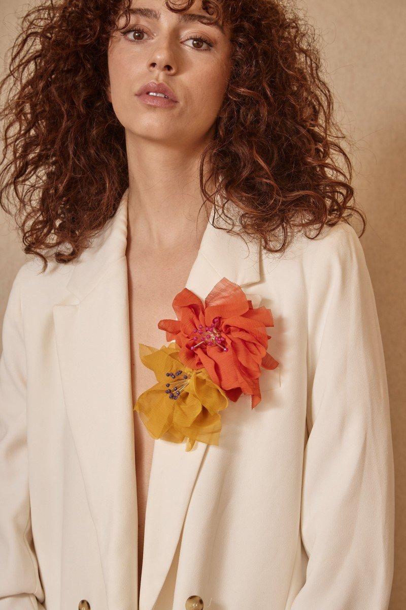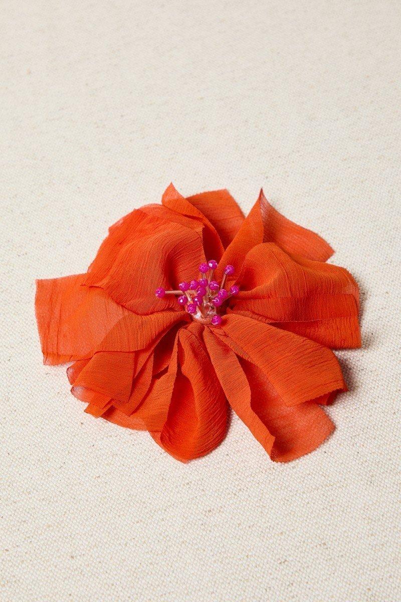Broche Latido flor gasa naranja